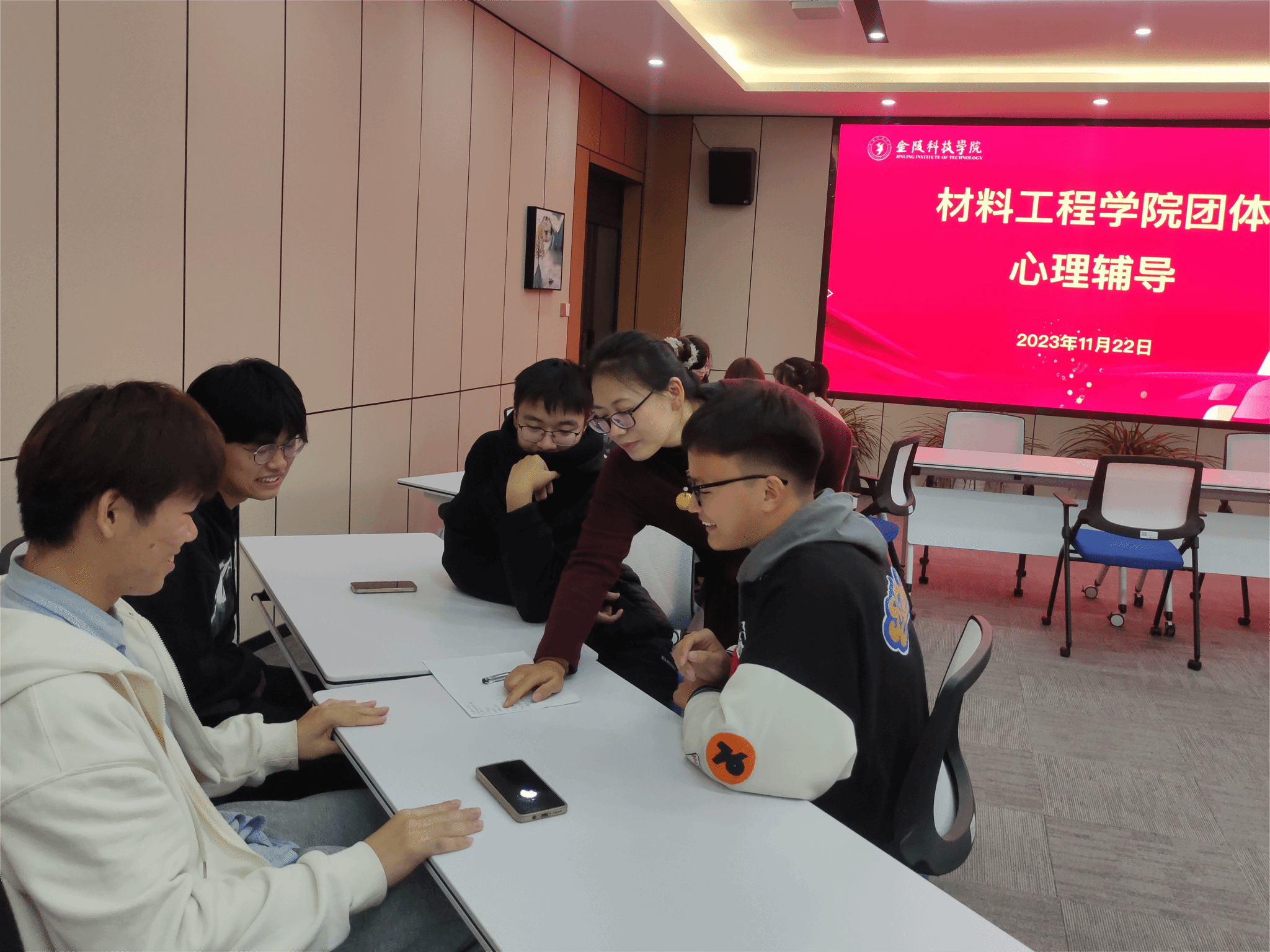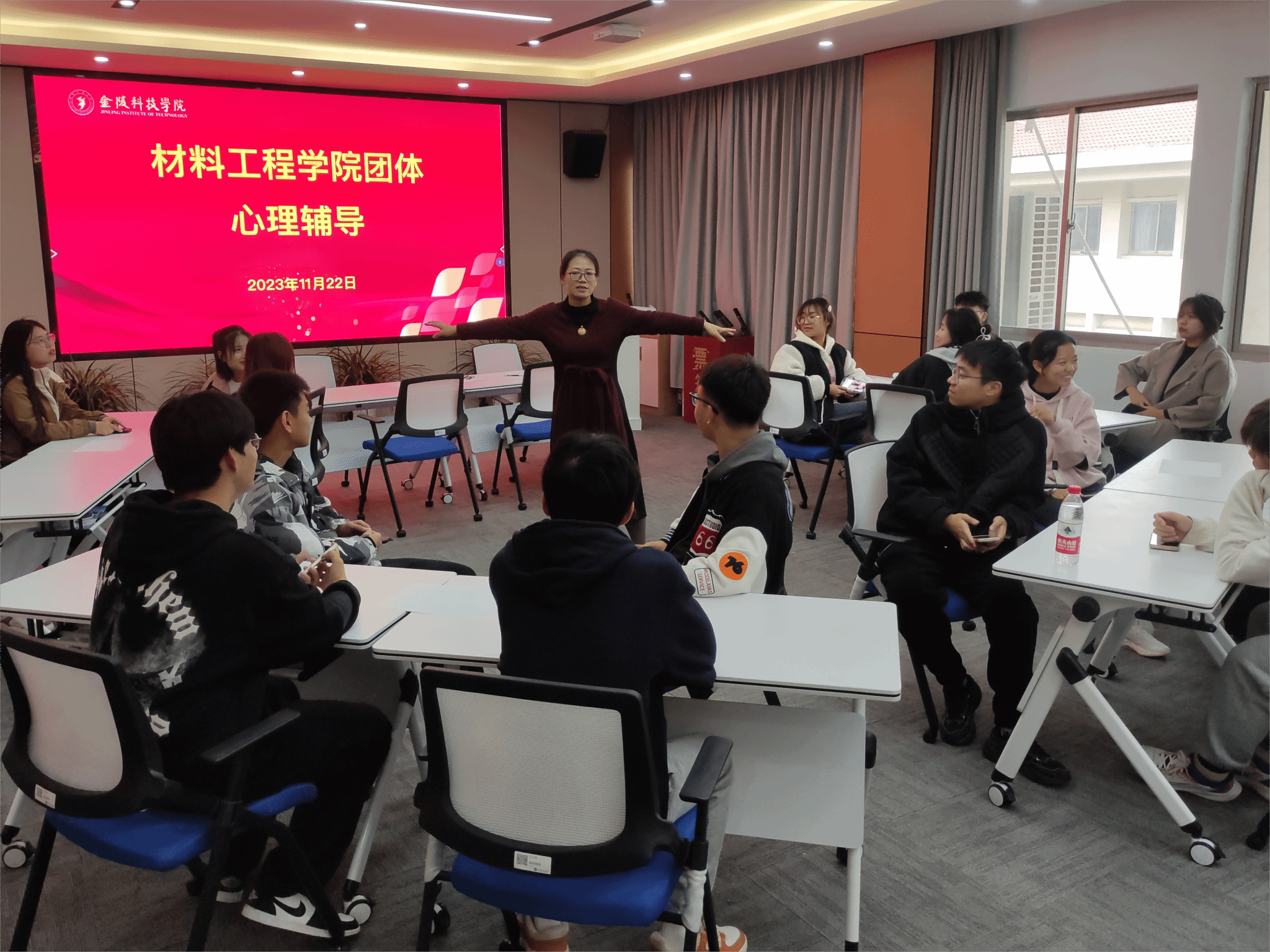 为了帮助同学们更好的认识压力,培养积极应对压力的能力,以更加积极的态度面对学习与生活,BBIN宝盈集团于11月22日下午在知行楼A506会议室开展以“应对压力”为主题的团体心理辅导活动,公司党委副书记陈智慧主持本次活动,23级心理委员与方舟心理社成员参加。